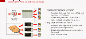 Schema on Read and Schema on Write: The differences between the two was captured from a presentation/discussion on Big data by Oracle. Regardless of SQL Server or oracle the concept described below is very important to understand.
