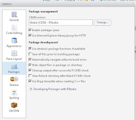 The install.packages() command in R will install all the files within the rattle library. In R-Studio one would set up the path to pull down the libraries as needed. As you can see the option for Use Internet Explorer Library/Proxy for HTTP is enabled.