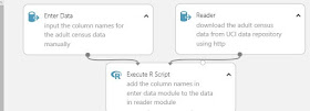 In continuation of my earlier blog post related to Azure ML studio, I would like to describe some additional components that can be used while setting up an experiment. One of the main components available in the Experiment designer is called Statistical functions. This section has a set of multiple functions to choose from, they range from Elementary Statistics to Hypothesis testing. These components would typically used once the dataset has been cleansed to an extent so that one can accurate readings of the data from the experiment. Please see the image below. In this example after executing an R-Script the output is fed to an Descriptive Statistics module.